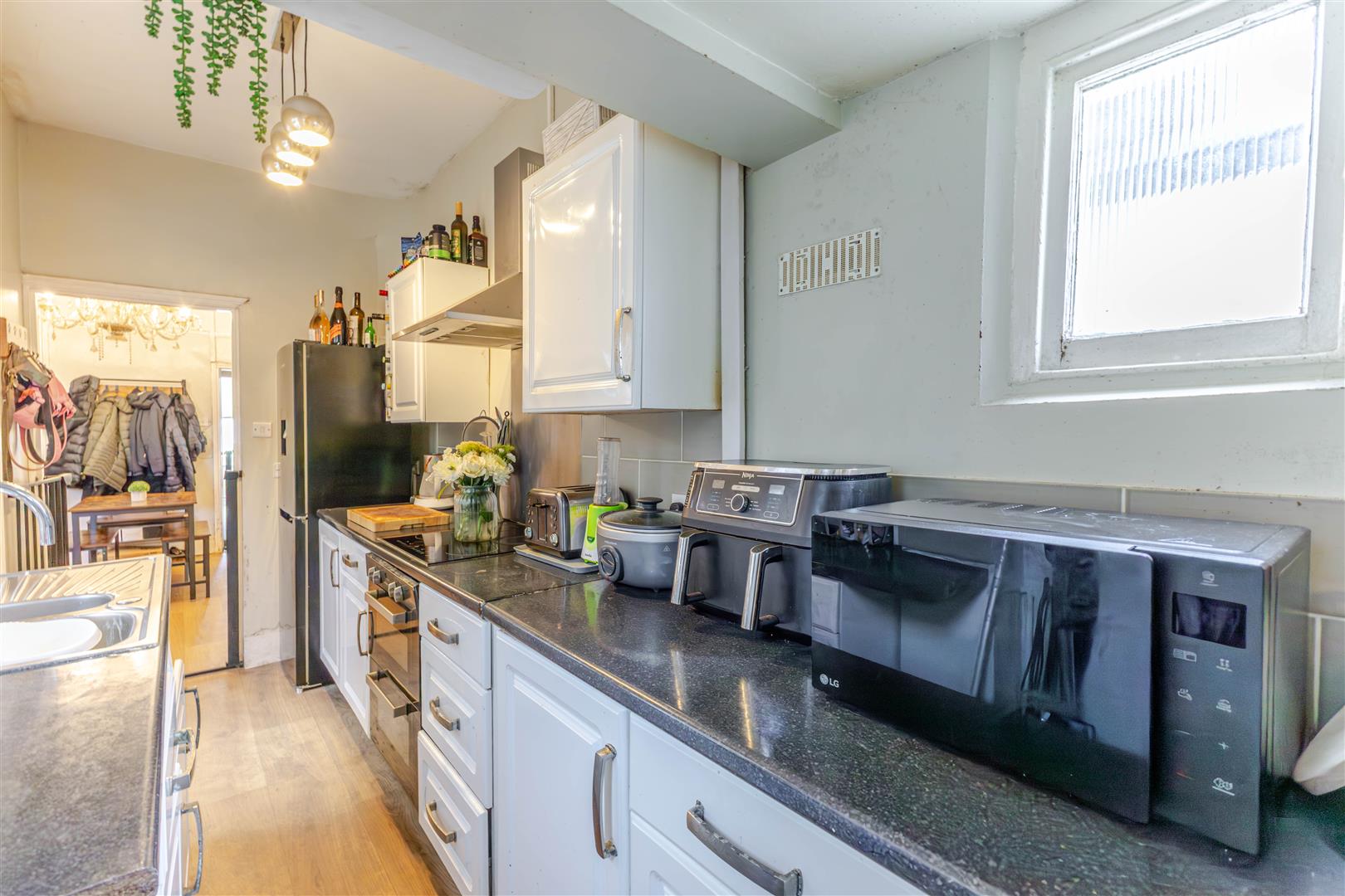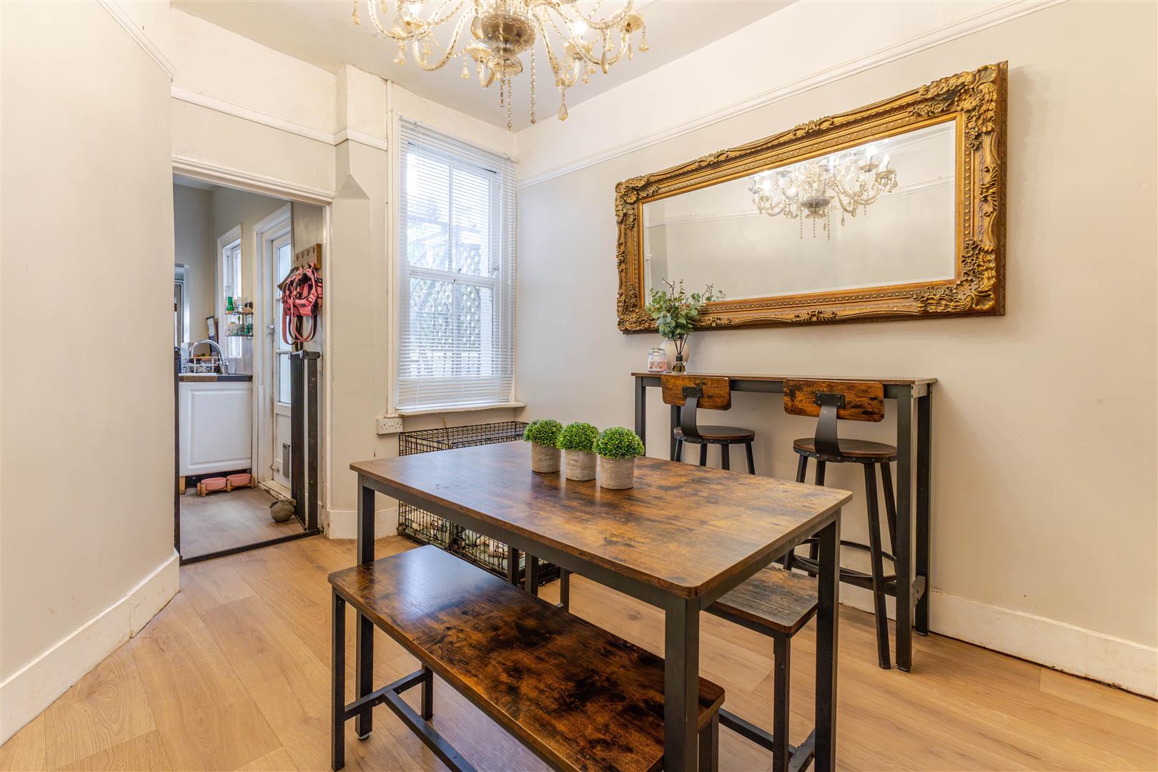 With radiator, door to stairs leading to First Floor, double glazed window to the rear. Opening to