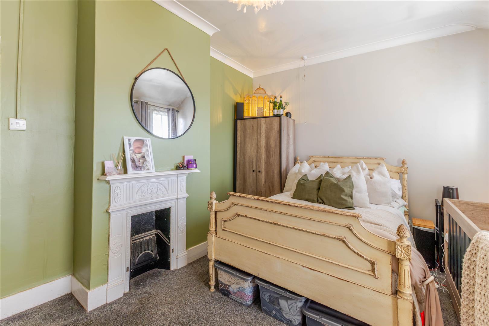 With radiator, feature fireplace, two double glazed windows to the front.