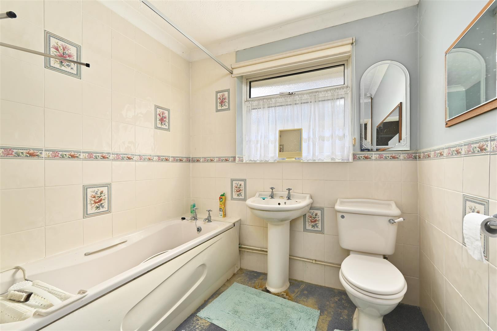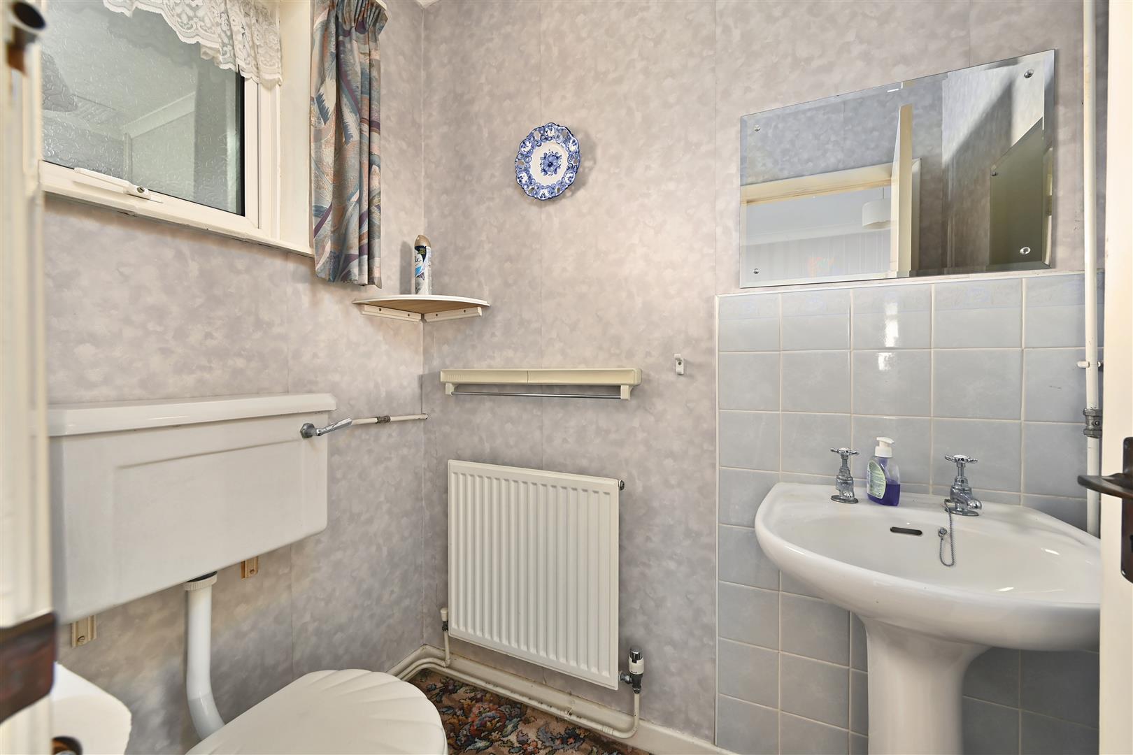Comprising low level w.c, pedestal wash hand basin, partly tiled walls, radiator, double glazed frosted window to the front.