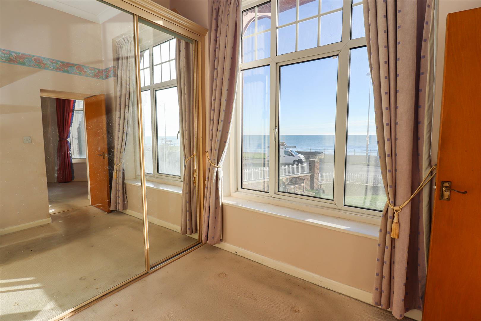 With fitted wardrobe, borrowed light window, double glazed window to the front enjoying sea views.