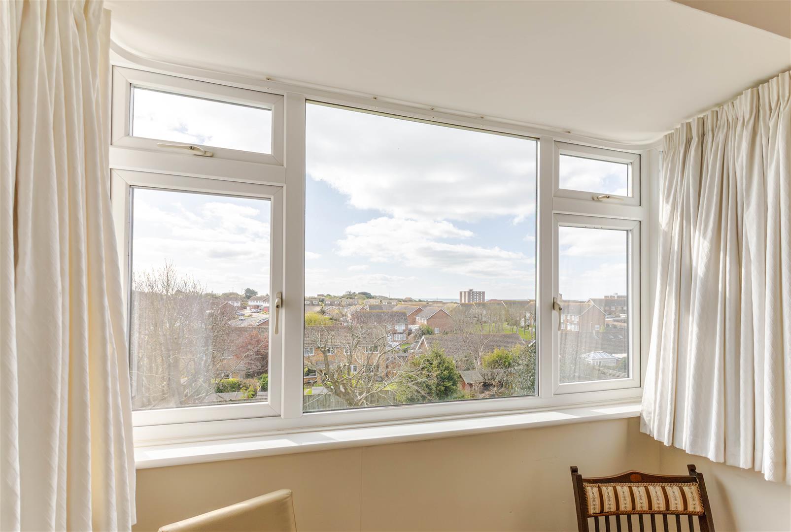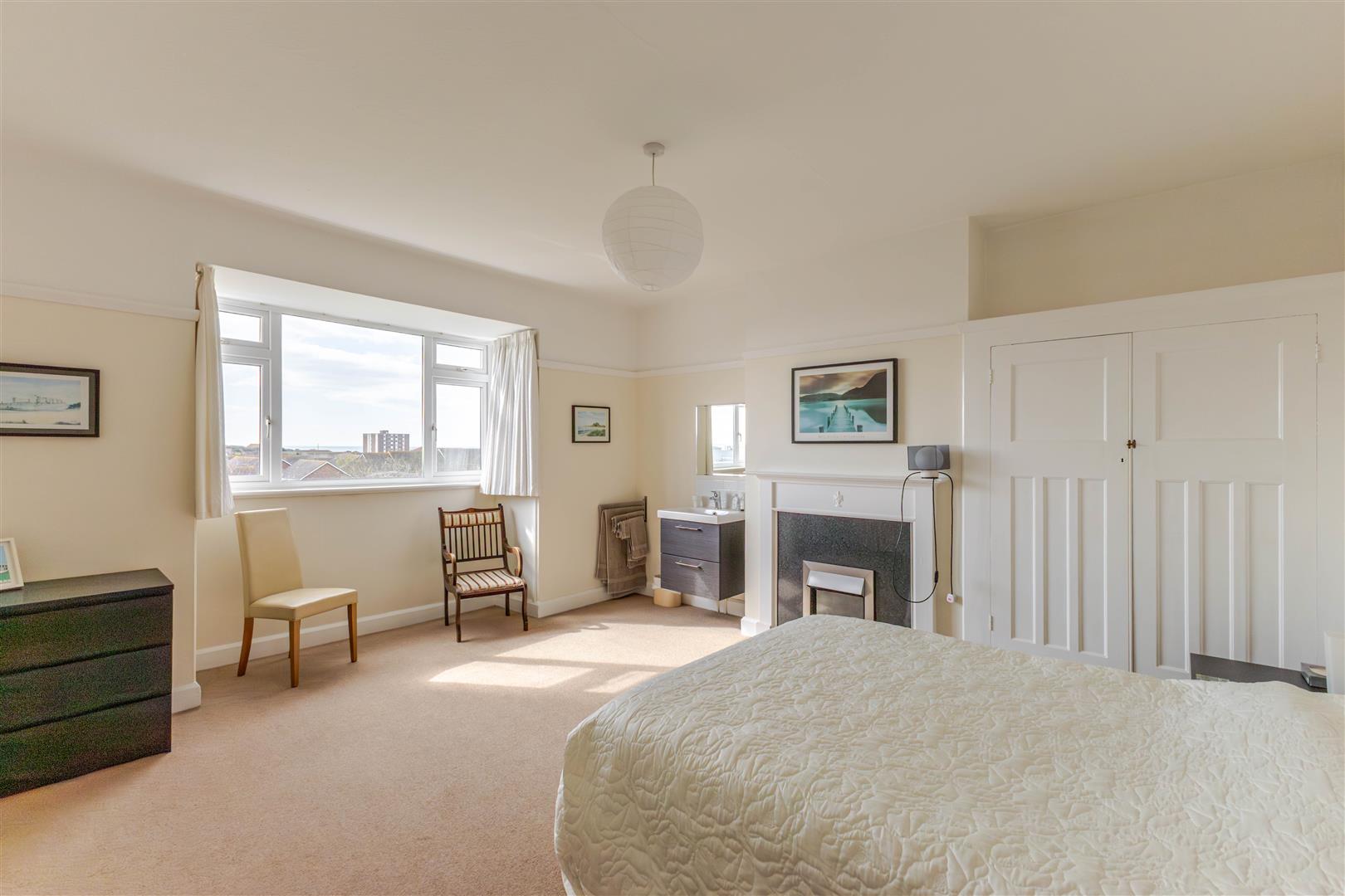 With radiator, fitted cupboard, vanity unit with inset wash hand basin, double glazed box bay window to the rear enjoying far reaching views towards the sea.