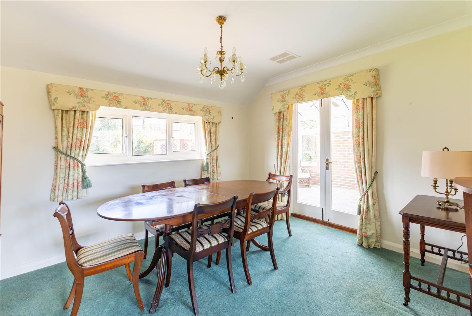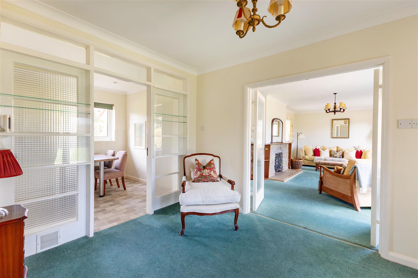With feature York stone fireplace & wood burning stove, two double glazed windows to the front, two double glazed windows to the rear. French doors to