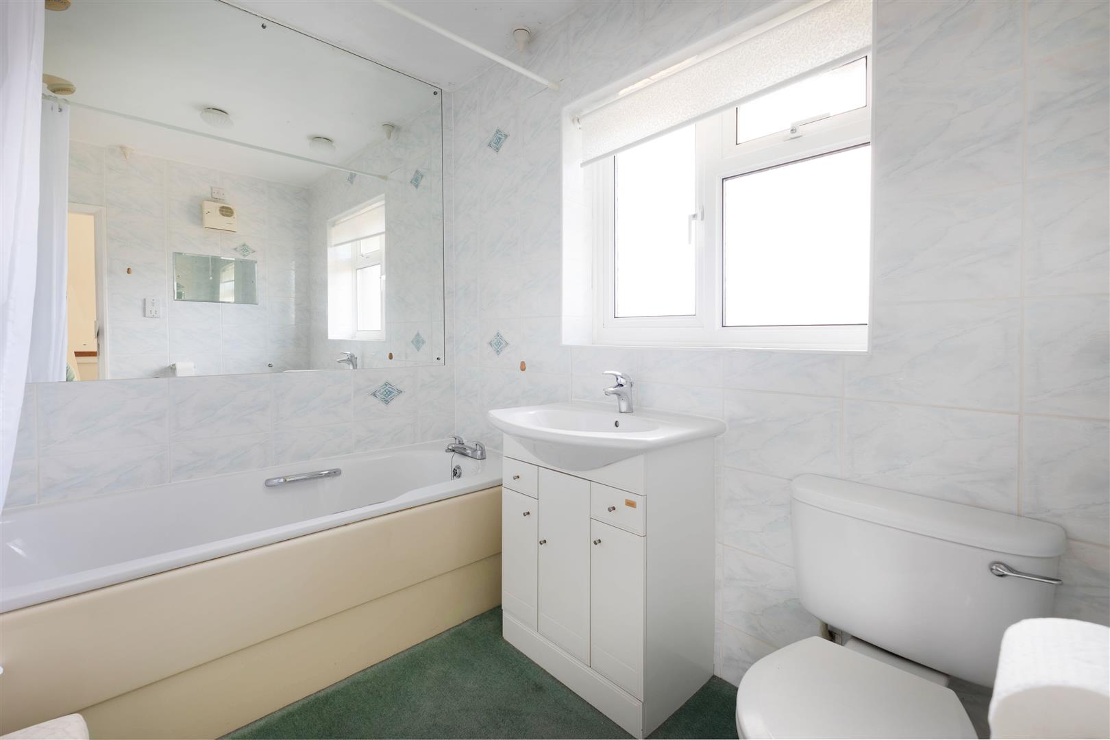 Comprising low level w.c, pedestal wash hand basin, partly tiled walls, double glazed frosted window to the front.