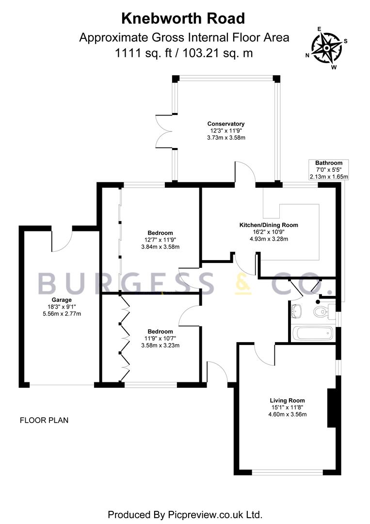 With radiator, tiled floor, Dimplex heater, polycarbonate roof, fitted blinds, double glazed windows, double glazed French door to the garden.