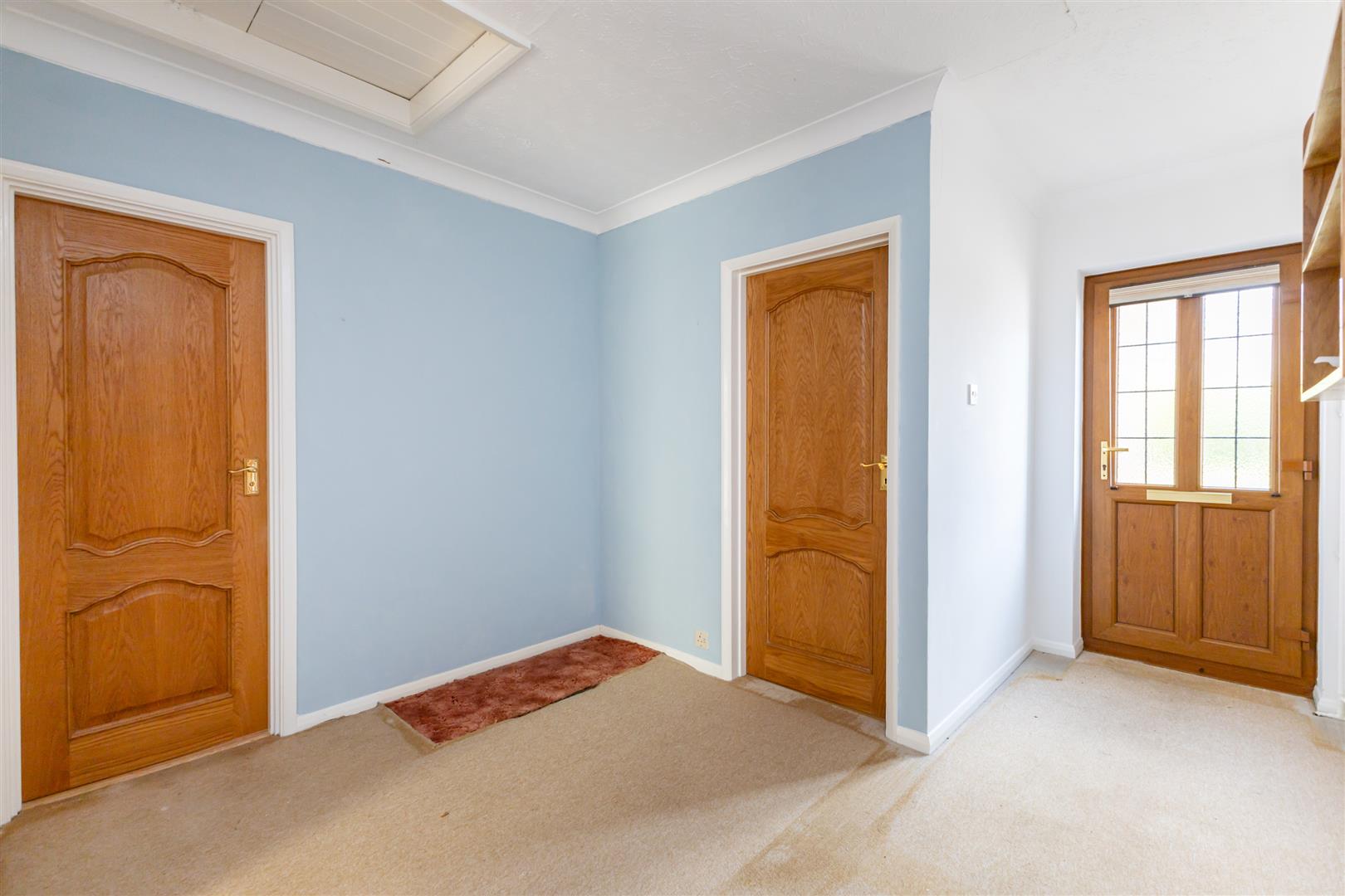 Comprising P-shaped bath with Mira electric shower over & screen, low level w.c, pedestal wash hand basin, partly tiled walls, chrome heated towel radiator, airing cupboard housing Viessman boiler, extractor fan, double glazed frosted window to the side.