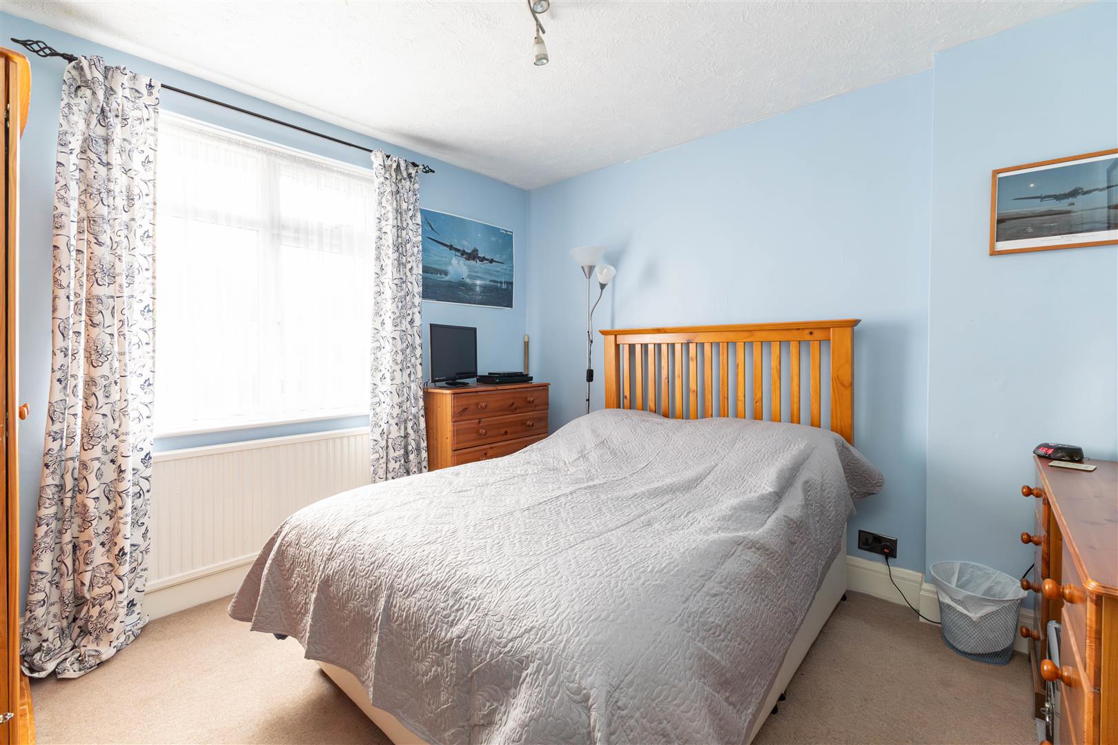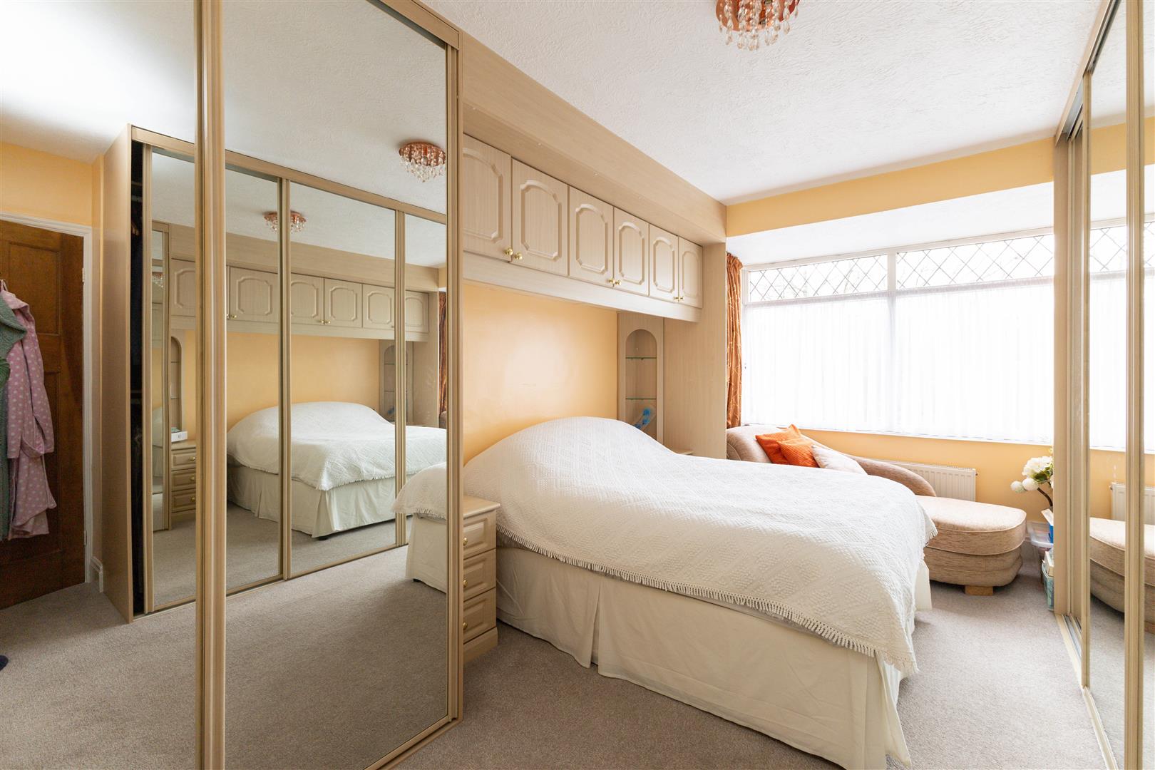 With radiator, fitted wardrobe with mirrored doors, fitted cupboards & bedside tables, double glazed box bay window to the front.
