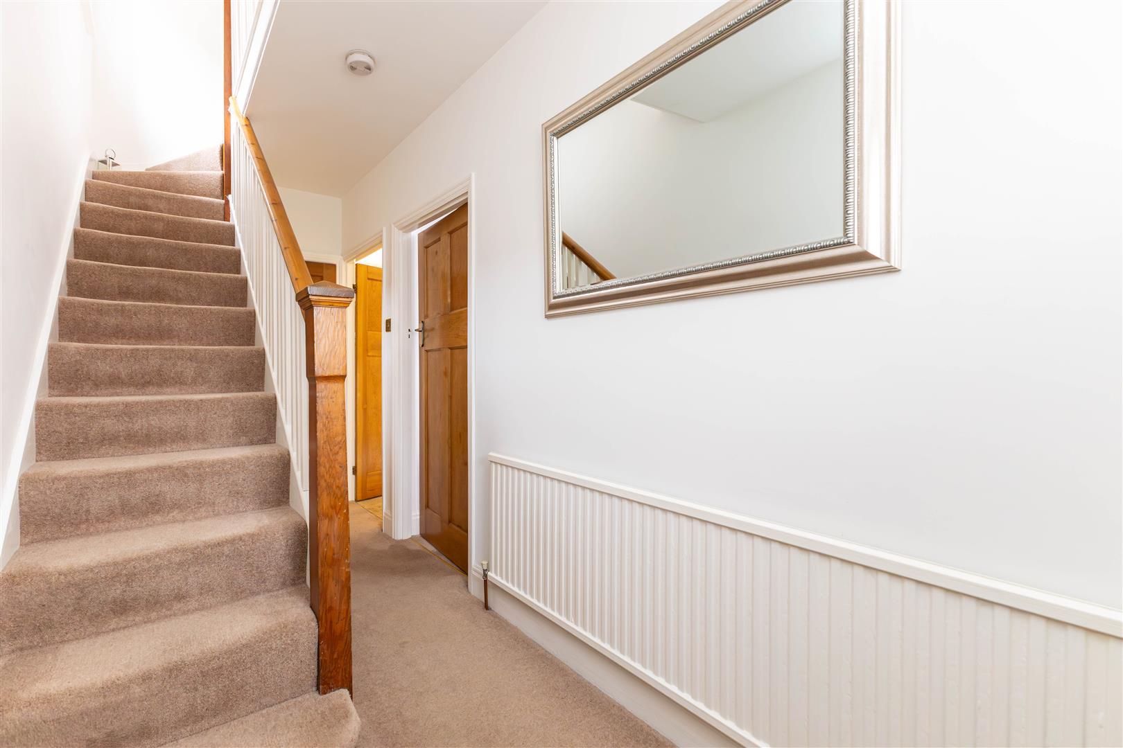 With radiator, stairs to First Floor, understairs storage cupboard housing consumer unit, electric meter, gas meter, Worcester boiler, double glazed frosted window to the side.